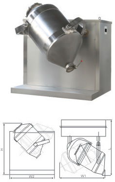 結構:該機由機座、傳動系統、電器控制系統、多向運動機構、混合筒等部件組成。與物料直接接觸的混合筒采用優質不銹鋼材料制造,桶體內外壁均經鏡面拋光。